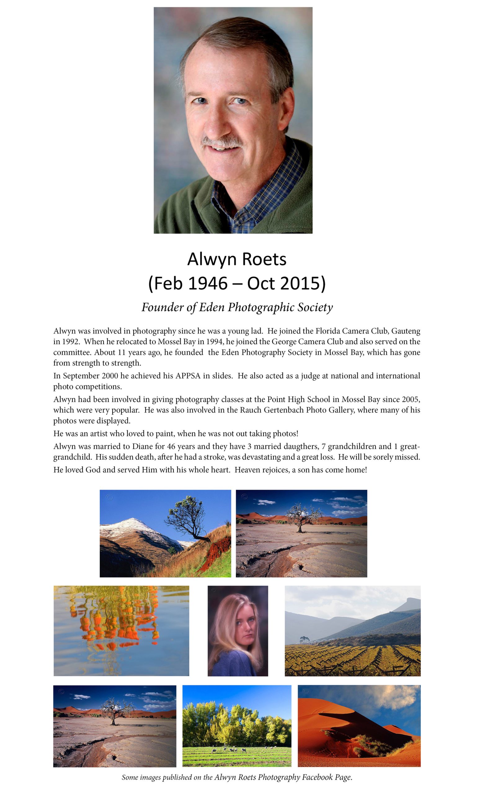 Founded in 2004, the Eden Photographic Society has grown into a leading club in the Garden Route by setting high standards. Read more here. Follow the links to read a tribute to the club’s late founder, Alwyn Roets, as well as about their 21st anniversary celebrations here.