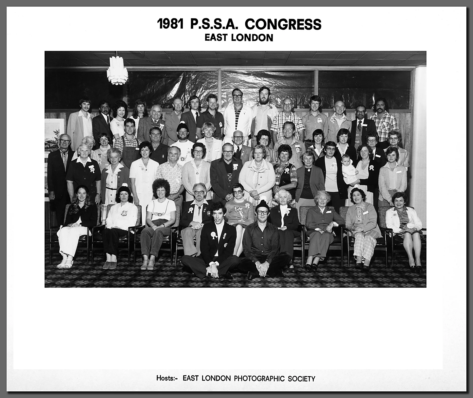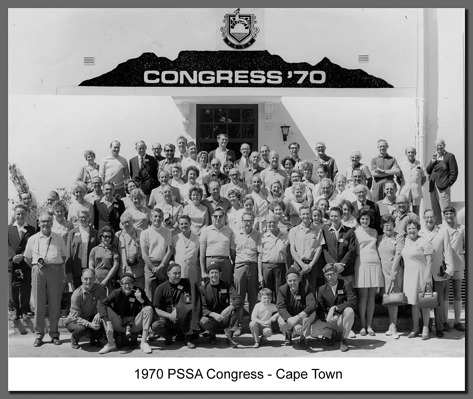 1955: A P.S.S.A. Award for Advancement and Service is introduced. The first recipients were Membership Chairman Rosie Rosewitz and editor of the Camera News journal, Eric Vertue (Camera News November 1955). 1955: In December the Motion Picture Division of P.S.S.A. was incorporated with David Millin as chair. 1956: At the PSSA congress in Cape Town, Dr Kin Bensusan said in his address as outgoing President “no one individual, no one club and no one Province should ever have sufficient say in the affairs of our organisation to dominate it. I shall be introducing the motion of equal Provincial representation for I sincerely feel that this is the only way we shall cement the friendly relationships which have been forged between photographic leaders in our respective Provinces. We shall be failing in our duty to those that come after us if we do not immediately safeguard these Provincial rights in our charter”. He mentioned that he had visited most member clubs during the preceding year and found that it was especially the smallest clubs that had benefitted most from P.S.S.A. membership, for P.S.S.A. “has provided them with the link they have badly needed, and facilities on a National Scale which nearby larger Clubs have previously been unable to provide for them.” Read Dr Kin’s full address to the 1956 congress here. 1956: A salon was held to coincide with the congress. 1956: Dr Bensusan reported in Camera News August 1958 “In the short space of two years, this new body was to become the third largest photographic society in the world, with over 1 000 members and encompassing more than 100 Clubs and Societies from Nairobi to the Cape.” 1957: Up to the formation of PSSA, members could only earn Honours from overseas associations, like the Royal Photographic Society (e.g. ARPS) or the Photographic Society of America (APSA). In August 1957 the first South African Honours were awarded to the following photographers, who became Associates of PSSA: