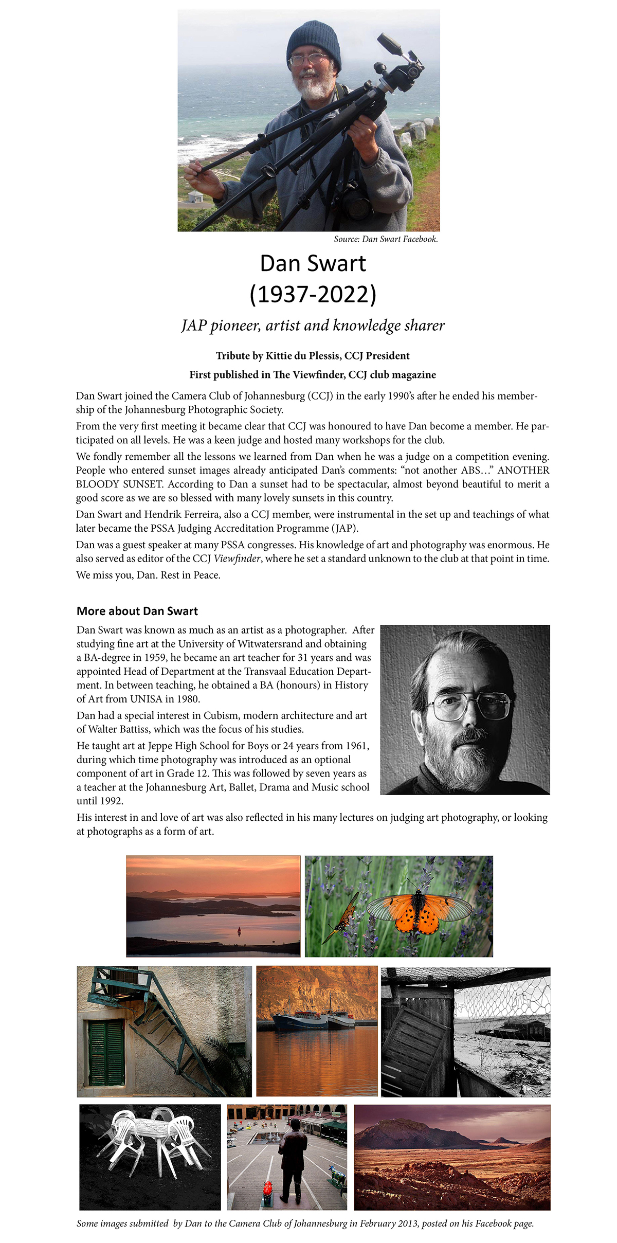 Tribute page – Dan Swart