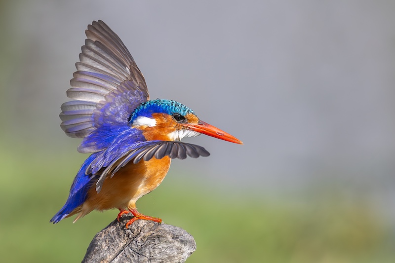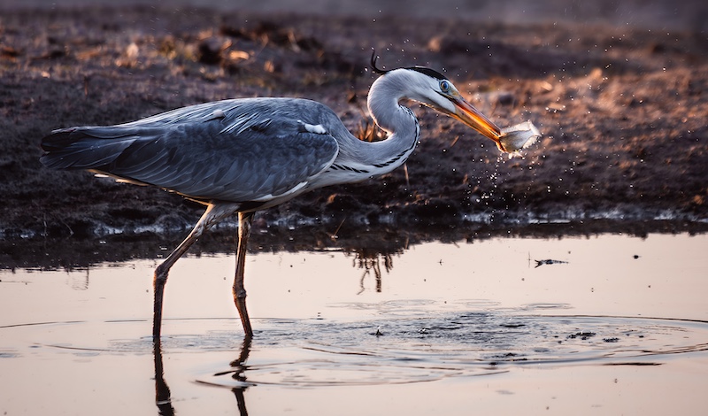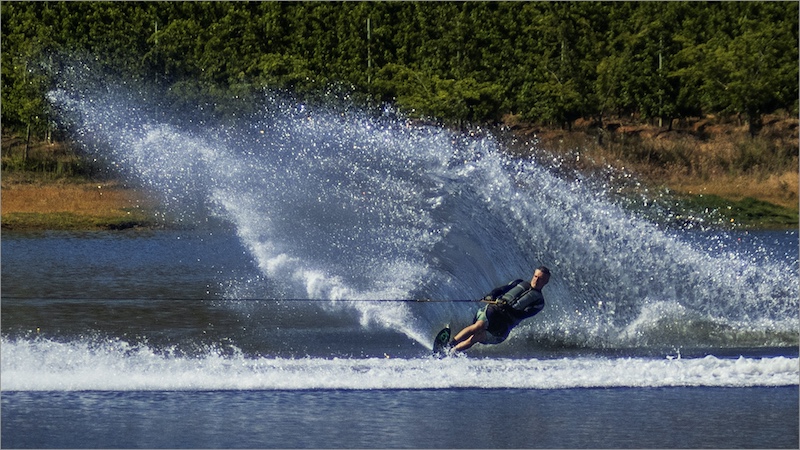 The picture was taken mid-afternoon. I positioned myself using the open grassland and the sandy area as a background to isolate the subject. I waited patiently for the bird to finish bathing and to fly into the planned area. Luckily, the sun was not too harsh, but an exposure compensation of – 0.33 was still needed to eliminate overexposing of the whites and still allow detail in the blacks.