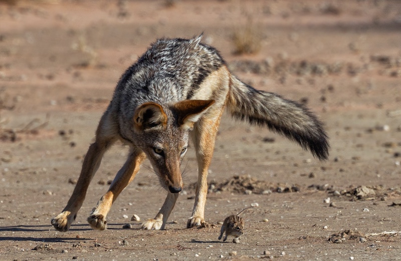 After spending three days, morning and afternoon, at my favourite water hole, Cubitje Quap in the Kgalagadi, I got lucky.
